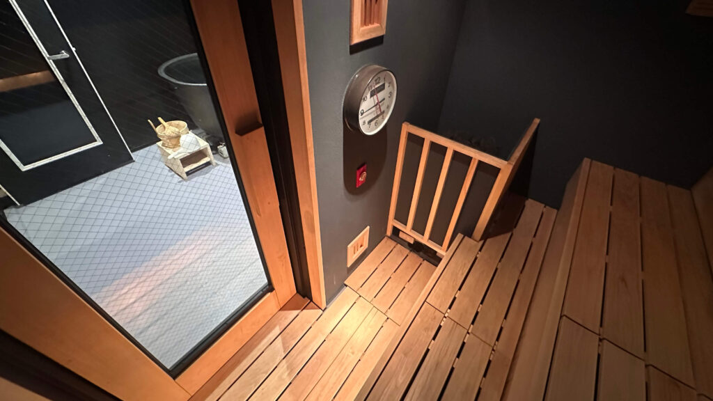 個室サウナは2部屋あり、セルフロウリュや水風呂、内気浴を自由に楽しめます。