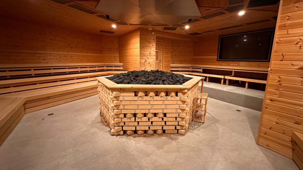 約70名が入れる大型サウナ室で、アウフグースなどのサウナプログラムを毎日開催!