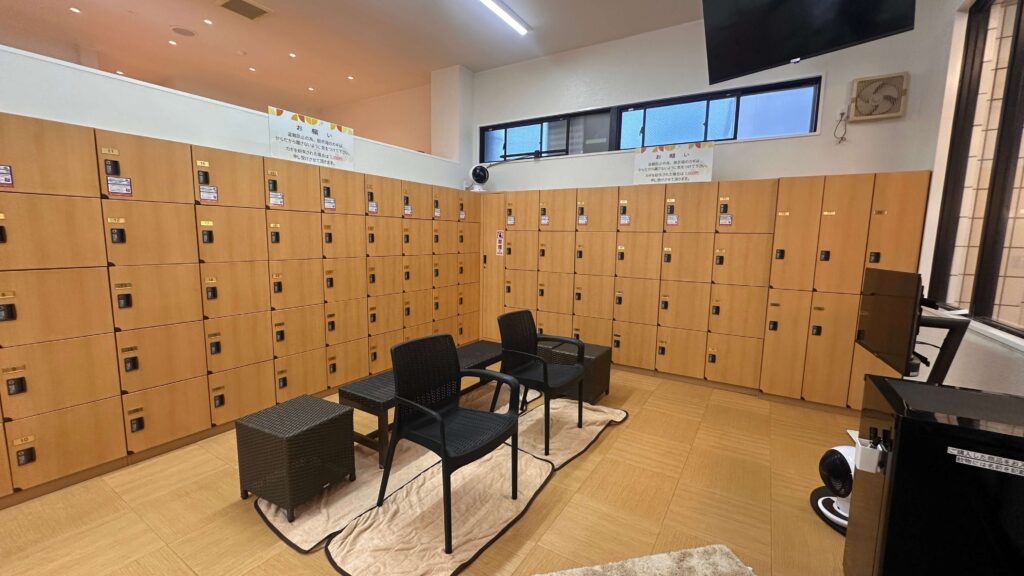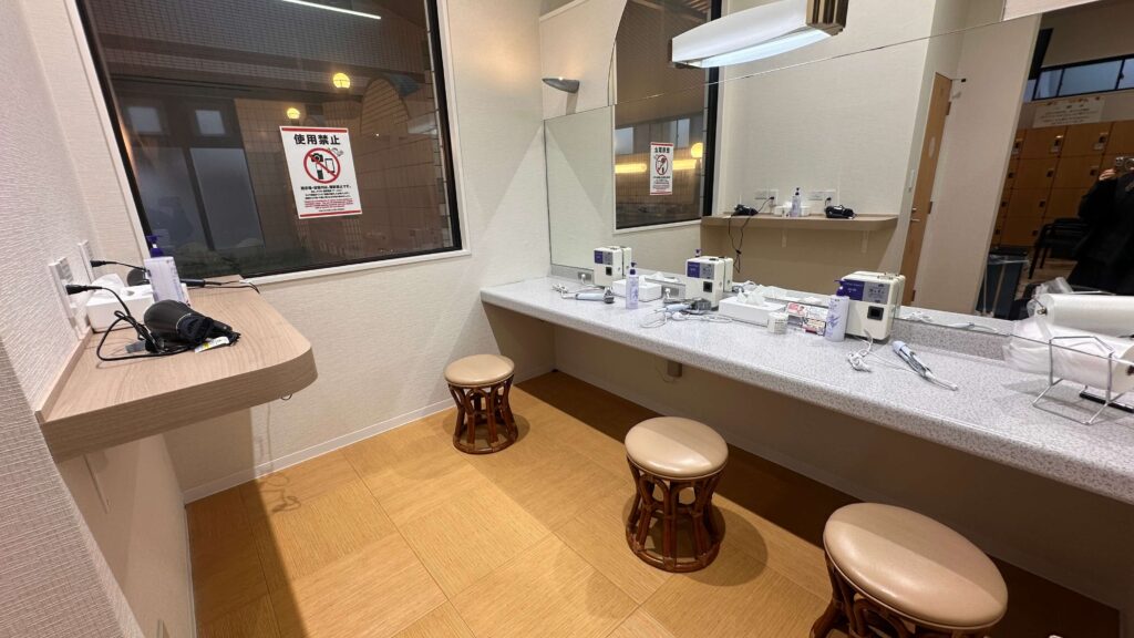 脱衣所にも椅子があるので、寒い日や暑い日、テレビを見たい時は内気浴もおすすめ。