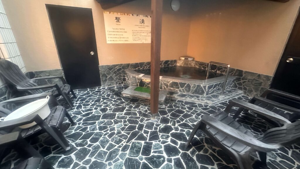 ととのい椅子が並ぶ外気浴エリアは、風通しが良くリラックス度満点です。