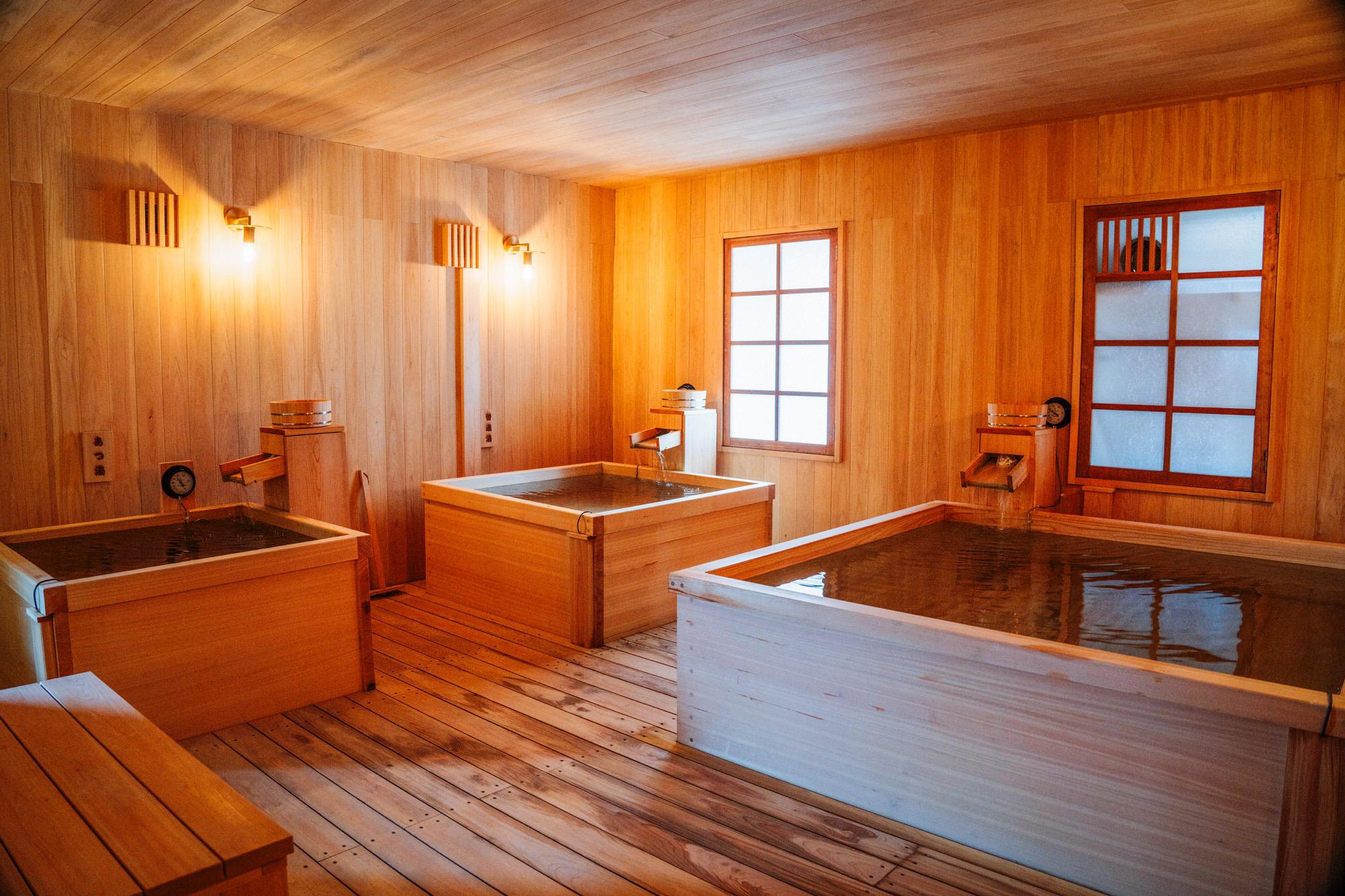 木の香りと柔らかな空気に包まれながら入浴できる、ホテル浴場としてはかなり贅沢な設計です。