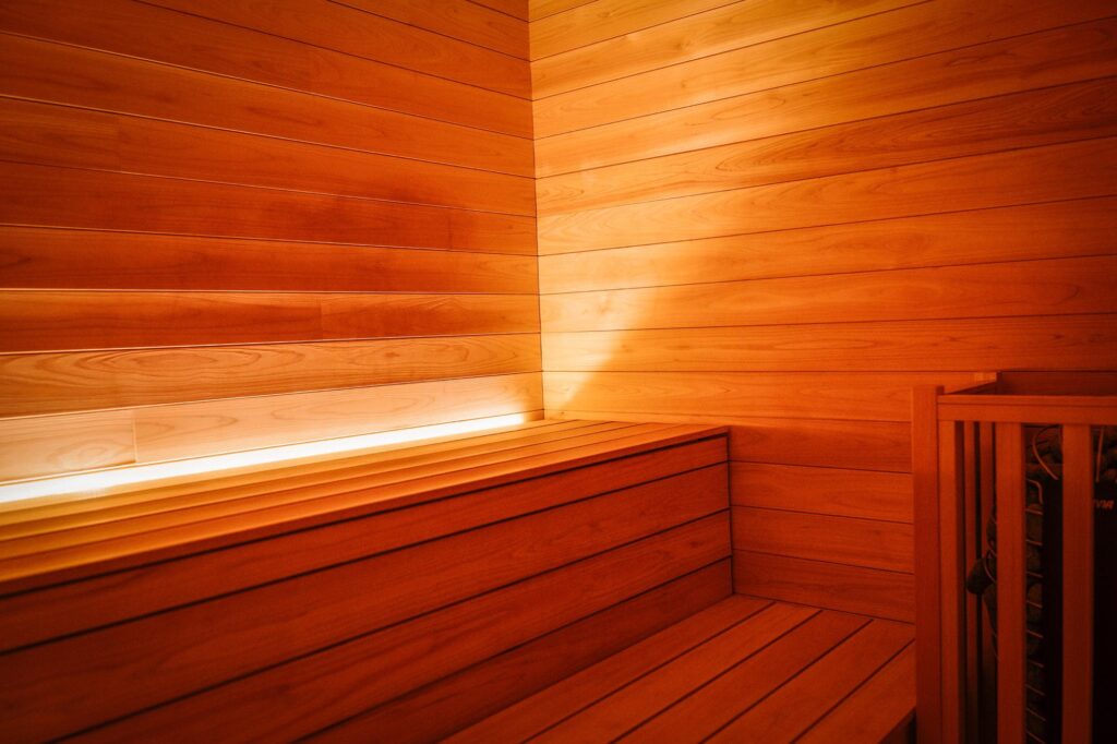 - ヒノキ空間のホテルサウナ